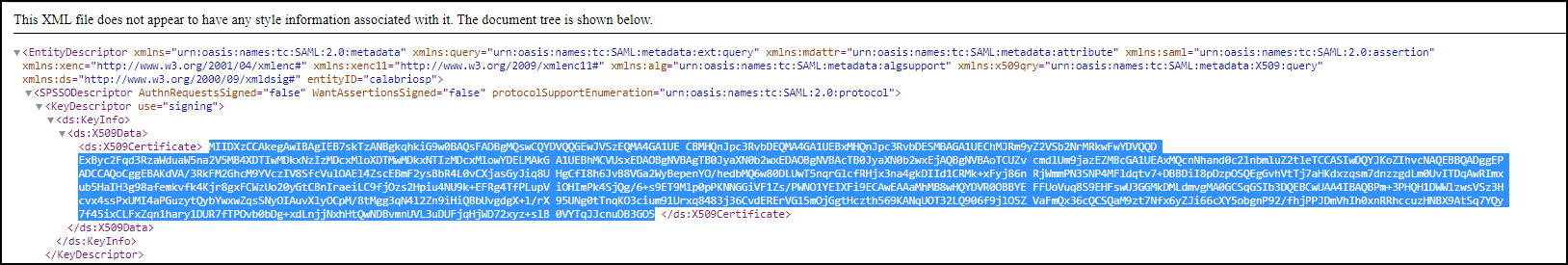 - Save the metadata file. Then follow the procedure detailed in Set up IAM authentication to connect your IdP to Calabrio for RingCX.