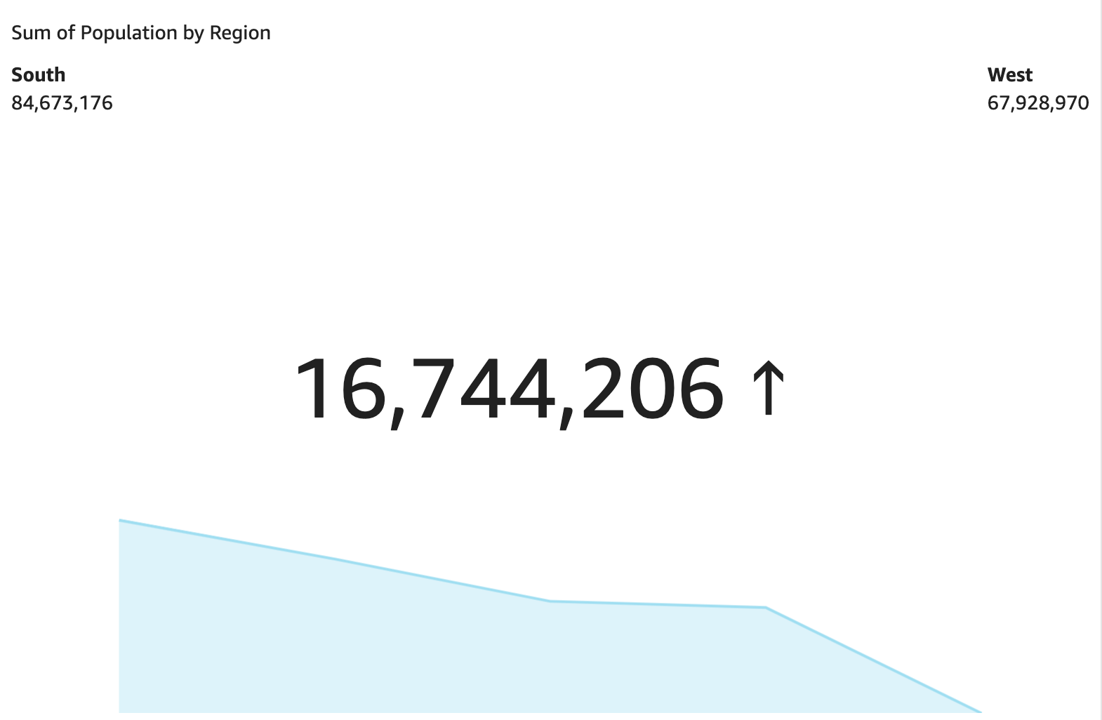 A KPI displays a value comparison, the two values being compared, and a visual that provides context to the data that's displayed. You can choose from a set of predesigned layouts to suit your business needs. The following image shows an example of a KPI visual that uses a sparkline.