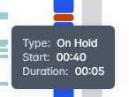 Hover over a segment in the agent contact bar to view the action type, the timestamp in the contact where it occurred, and its duration.