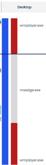 The Desktop panel summarizes the actions that agents took on their phones and computers. This information lets you identify and analyze decisions that affected their handling of the contact. The panel contains two bars: one for the agent's actions (on the left) and one for the applications that the agent used (on the right). Examples of actions are "On Hold" or "After Call Work." Examples of applications are "Salesforce" or "Microsoft Excel."