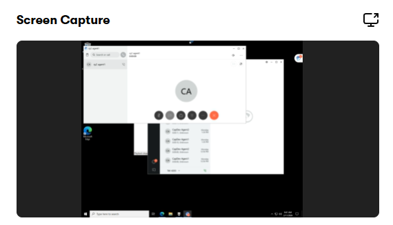 The Screen Capture panel provides a comprehensive view of the agent’s actions throughout a contact. You can replay programs the agent opened, buttons the agent clicked, and text the agent typed.