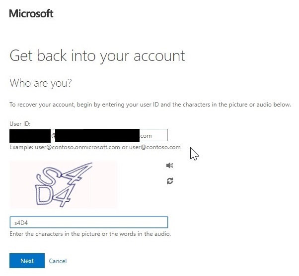 Enter your @teleoptiapp.com or @avdapp.calabriocloud.com address in the first field and the characters in the picture or the words in the audio in the second field. Click Next.